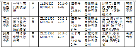 2019年4月24日,安徽省科學(xué)技術(shù)情報(bào)研究所對(duì)皖維公司“基于有機(jī)無機(jī)雜化鈦系催化劑的高級(jí)特種陽離子聚酯樹脂的產(chǎn)業(yè)化”項(xiàng)目科研成果開展技術(shù)查新,其查新結(jié)論是:本課題所研究的鈦系催化劑開發(fā)及應(yīng)用于特種陽離子聚酯的產(chǎn)業(yè)化研究,采用東華大學(xué)研發(fā)的尺度片狀鈦系聚酯催化劑在酯化釜在線添加,采用管道在線添加高含量(12%,常規(guī)2.5%)改性單體間苯二甲酸-5-磺酸鈉,并與動(dòng)、靜態(tài)混合器相結(jié)合的方法,這在檢測報(bào)告中的相關(guān)文獻(xiàn)中未見其他單位有相同內(nèi)容的報(bào)道(附件2.2.1)。