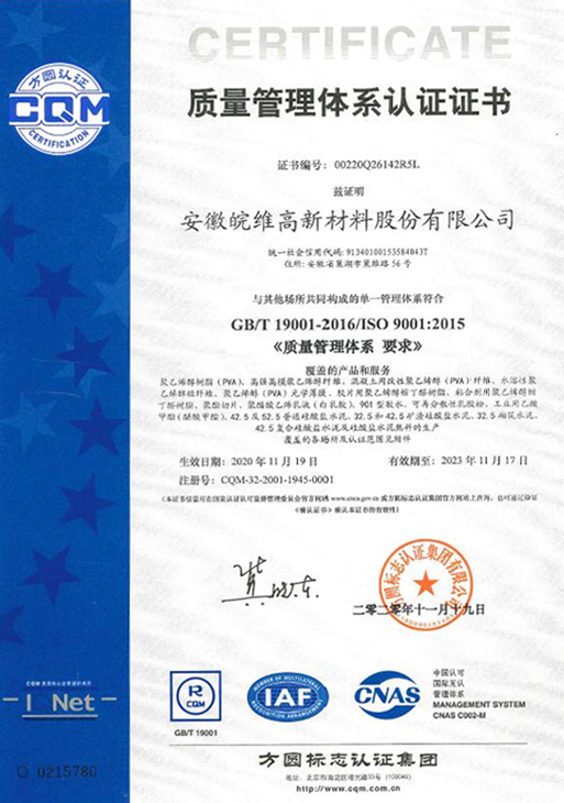 質(zhì)量管理體系認(rèn)證證書(shū)