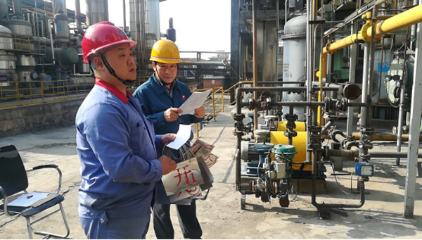 “反應(yīng)液送出前,現(xiàn)場閥門已經(jīng)所有確認(rèn),反應(yīng)液分析數(shù)據(jù)合格,現(xiàn)已切入合格槽。”“預(yù)熱器走旁通,進(jìn)出口閥門已關(guān)閉,物料已倒空,現(xiàn)可更換視鏡!”近日,有機(jī)分廠相繼在各工序生產(chǎn)現(xiàn)場進(jìn)行年度實(shí)踐考試。