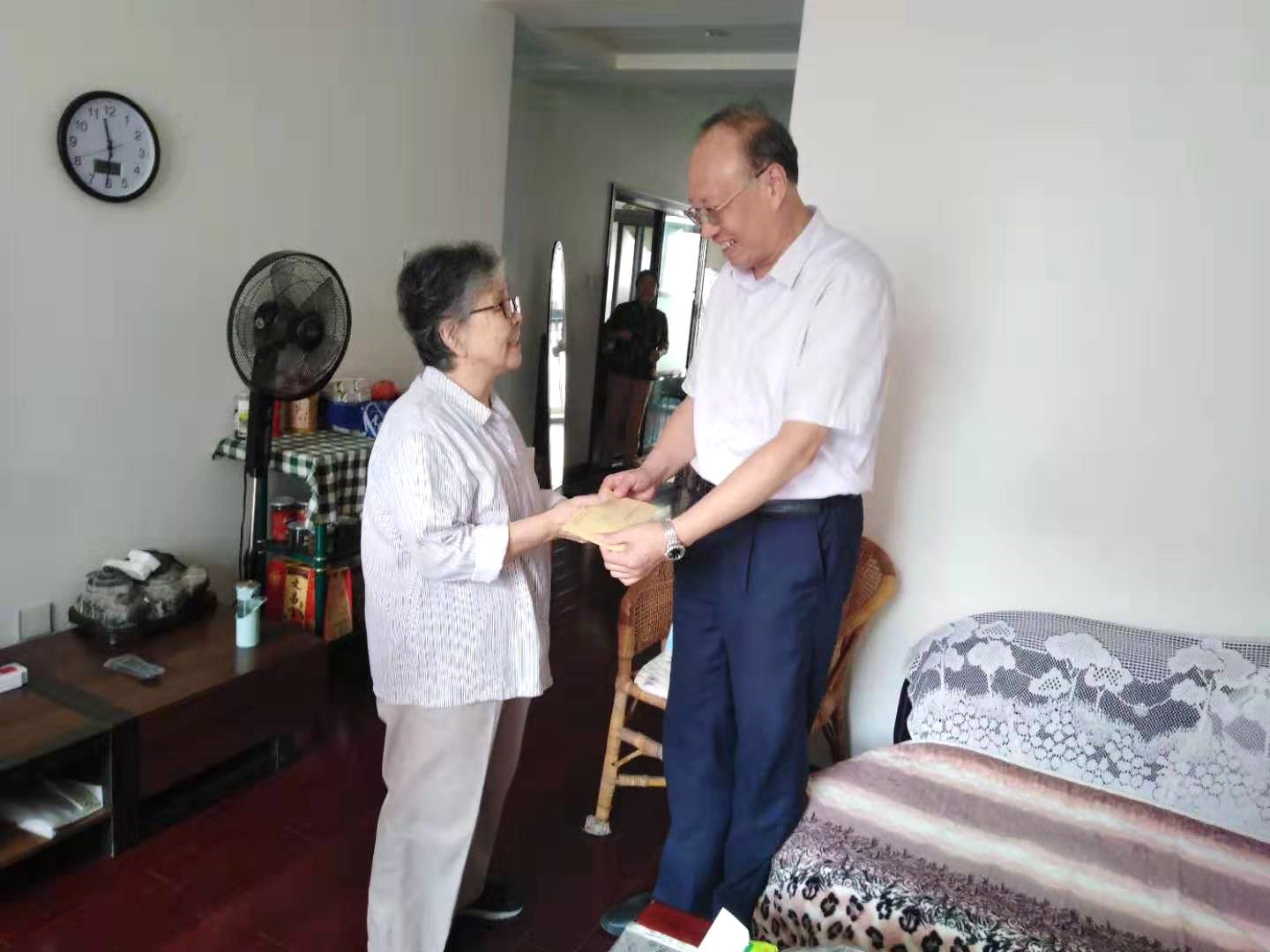 9月29日上午,集團(tuán)公司黨委副書記張正和帶社區(qū)、黨委工作部有關(guān)同志驅(qū)車前往合肥,專程上門慰問在新中國成立前參加革命工作的老干部、老黨員。9月30日上午,張正和又來到居住在皖維社區(qū)和巢湖市的老干部、老黨員家中看望慰問,并送上慰問金。